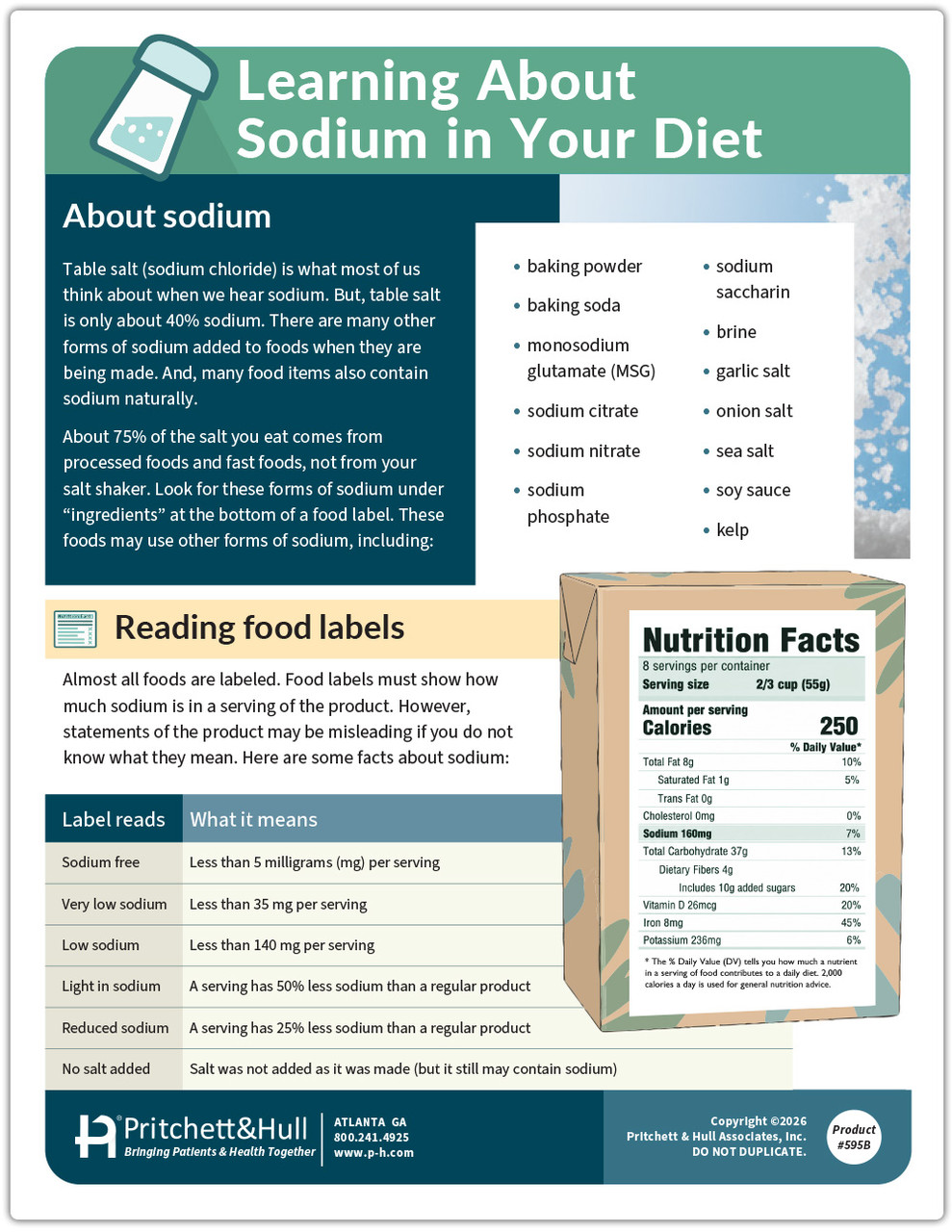 As a healthcare professional, you know how challenging it is to help patients effectively manage their dietary habits. Many patients genuinely believe that simply putting down the saltshaker is enough, unaware that about 75% of the salt they eat actually comes from processed foods and fast foods. The "Learning About Sodium in Your Diet" tearpad by Pritchett & Hull is an excellent, straightforward tool designed to support your consultations by grounding nutritional advice in clear, actionable facts.